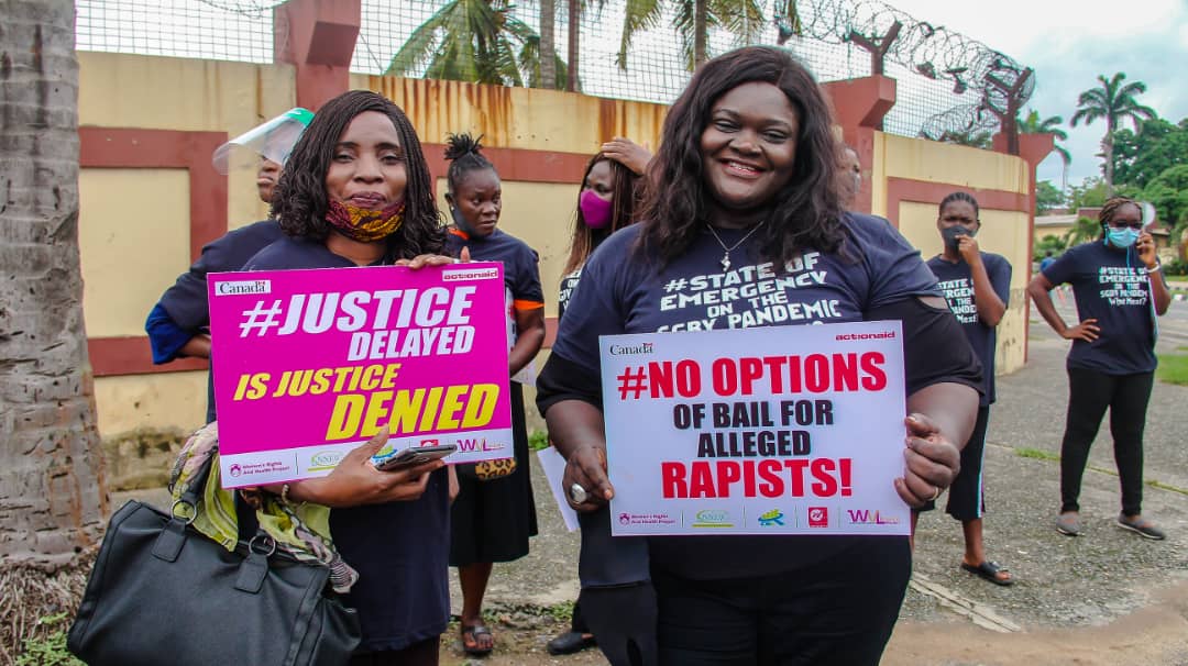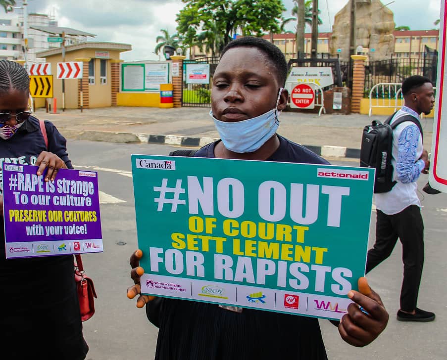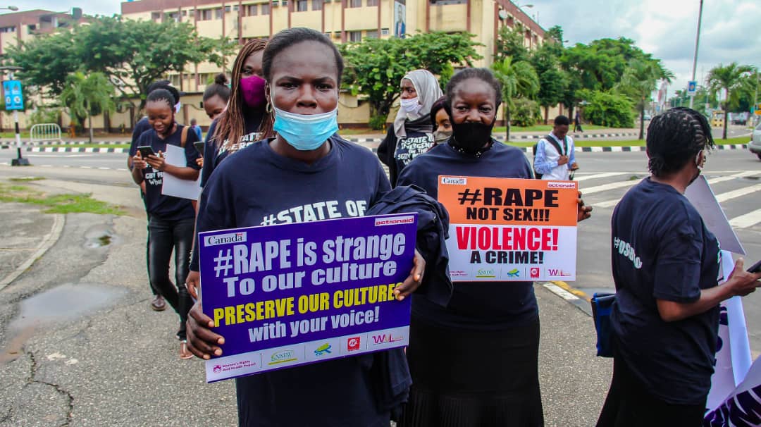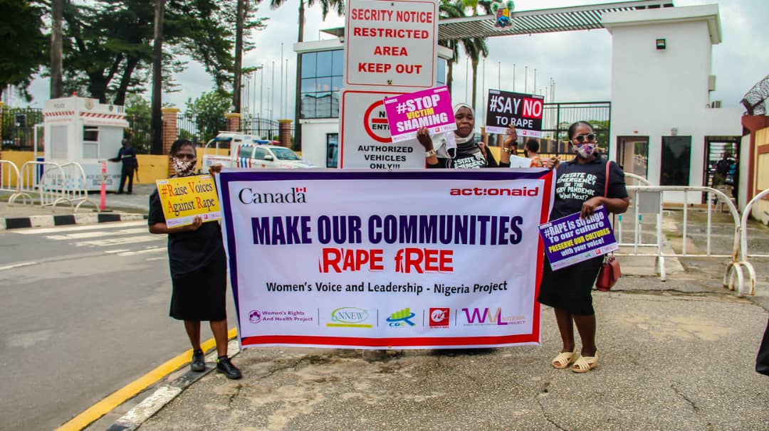 The partners of ActionAid Nigeria implementing the Women’s Voice and Leadership (WVL) Nigeria Project in Lagos state: Women’s Rights and Health Project (WRAHP), The Voice of Women Radio WFM 91.7, NECA’s Network of Entrepreneurial Women (NNEW) and Centre for Gender Economics (CGE Africa), conducted a peaceful protest to the Lagos State House of Assembly to call the governments attention to the unacceptable increase in Sexual and Gender-Based Violence plaguing the State and indeed the entire country.